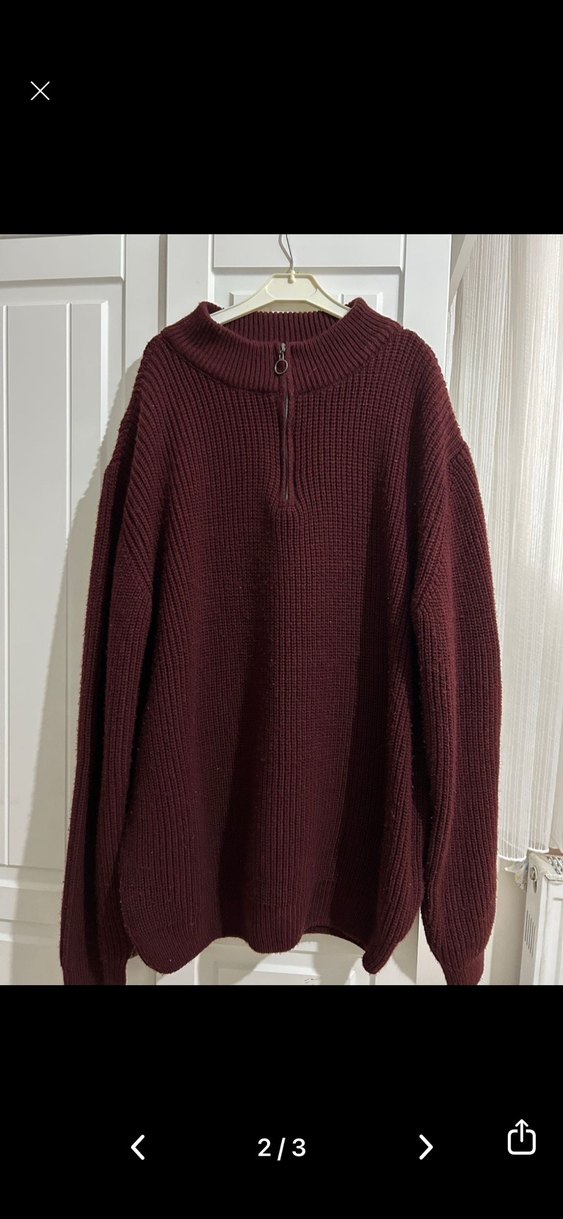 Bordo Yarım Fermuarlı Örgü Kadın Kazak