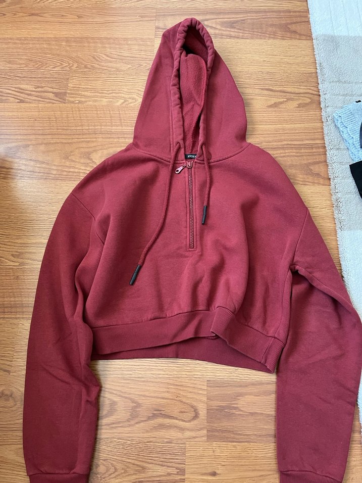 Bordo Yarım Fermuarlı Sweatshirt