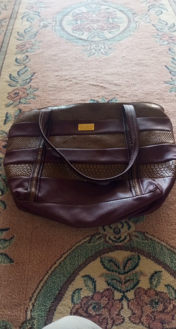 kahverengimsi bir rengi vardır ışıktan dolayı öyle gözüküyor bordo renktedir çanta hiç kullanılmadı sadece diğer çantalarla bazanın altında iç içe olduğu için biraz kıvrıldı arkasında küçük bir gözü vardır içinde de büyük bir gözü ve büyük gözün içinde de gizli bir bölümü vardır markası üzerine yazıyor gayet hoş bir çantadır temizdir