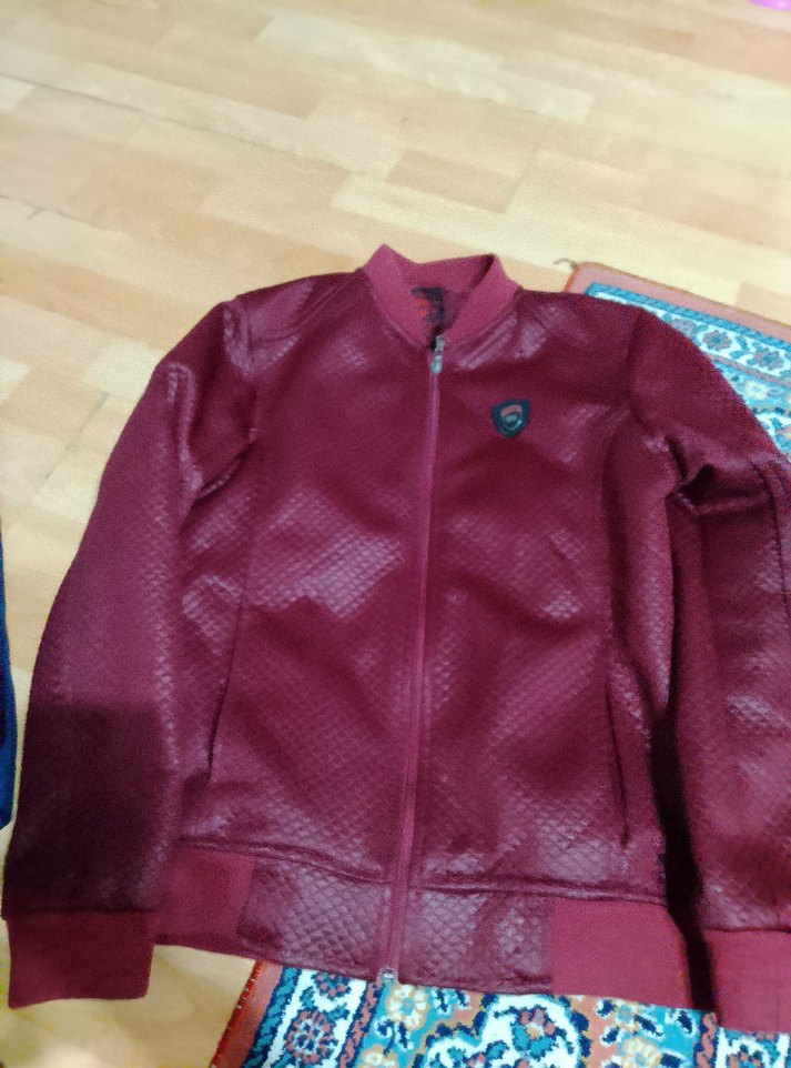 Bordo renkli, yılan desenli deri ceket, uzun kollu ve fermuarlı. Dar kesim ve yuvarlak yaka detaylarıyla günlük kullanıma uygun.