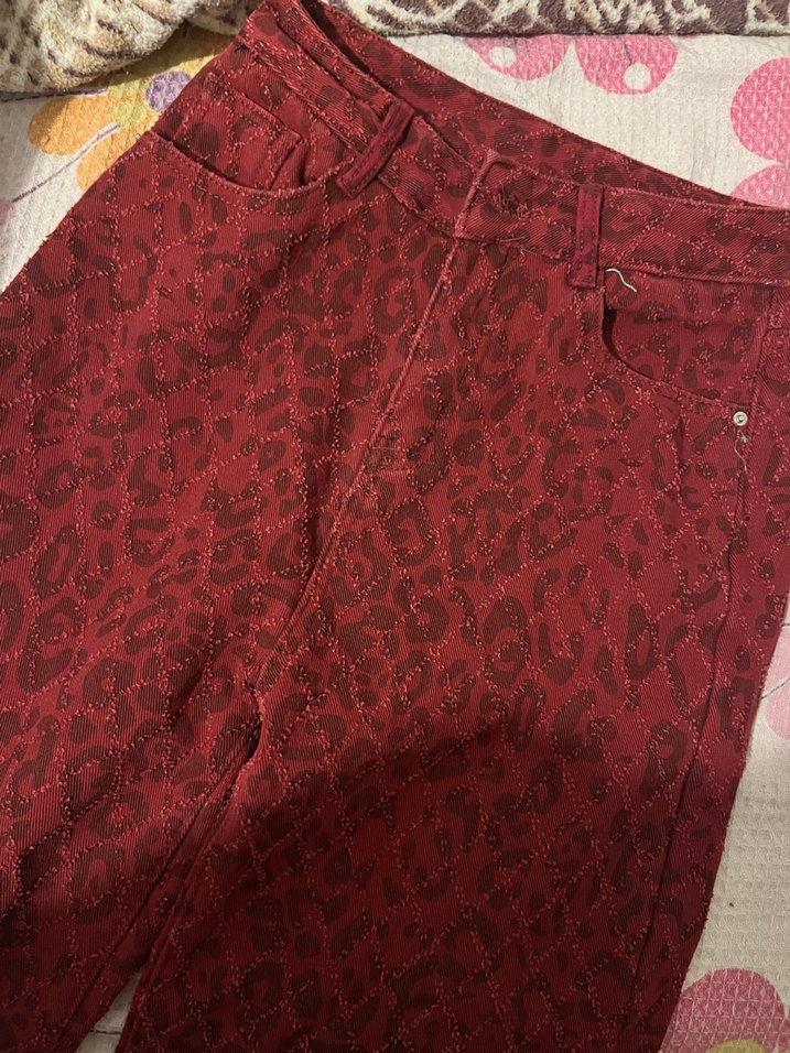 Bordo Yılan Desenli Kadın Kumaş Pantolon