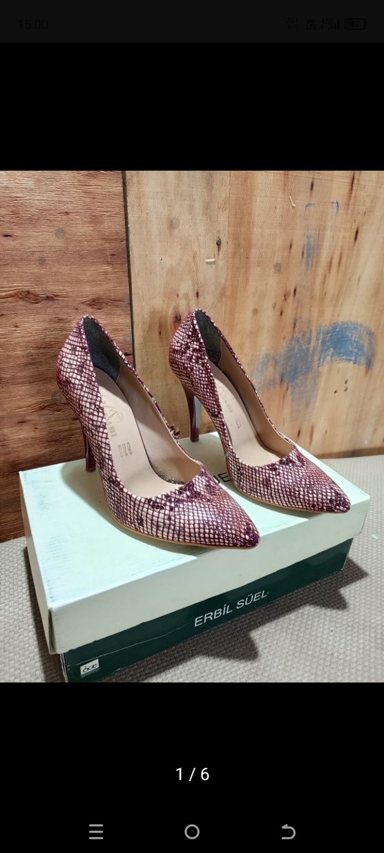 Bordo yılan desenli süet stiletto, parlak ve dantel detaylı, romantik akşamlar için uygun