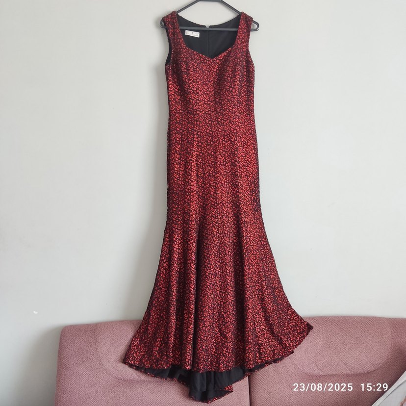 Bordo Yılan Desenli Uzun Abiye Elbise