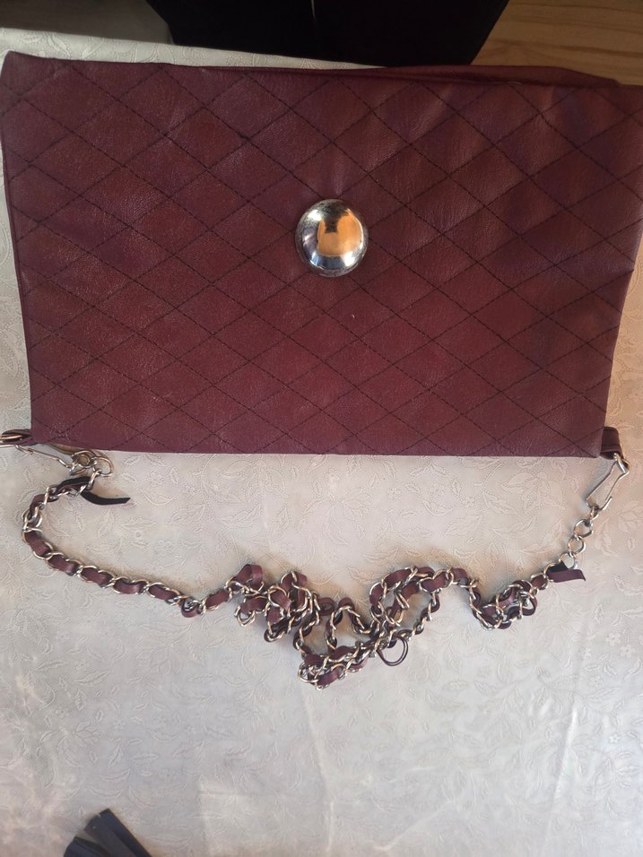 Bordo yılan desenli, zincir detaylı kadın el zinciri, bohem tarzda düğün kombinlerine şıklık katıyor.