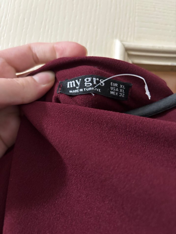Bordo renkli, yırtmaçlı kadın elbise l xl uyumlu