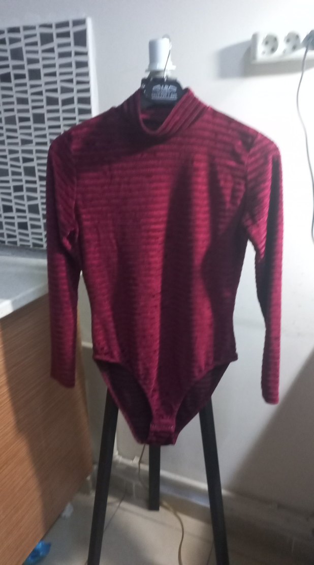 Bordo renkte, yüksek yakalı ve uzun kollu, vücuda oturan kadın triko bluz. Sentetik örgü kumaştan, günlük kullanıma uygun rahat sokak stili.