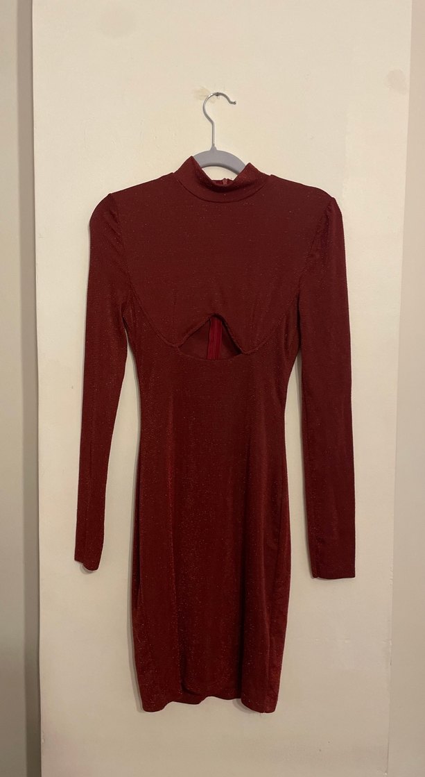 Bordo renkli, yüksek yakalı ve uzun kollu, süet dokulu triko elbise. Drapeli detayı ve midi boyuyla romantik akşamlar için ideal. ✨ bir gün olur da giyerim diye almıştım giymek nasip olmadı boşluk kısmı tam göğüs altına denk geliyor satışı artık trendyolda yokmuş ama son fotoda gözüktüğü gibi