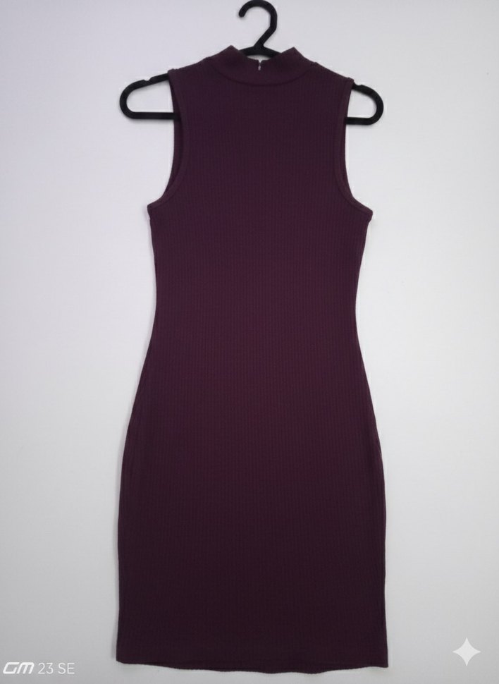 Yüksek yakalı, kolsuz ve bordo renkte, vücuda oturan midi uzunlukta triko elbisedir. Pürüzsüz sentetik kumaştan üretilmiş olup, rahat ve şık bir görünüm sunar. Romantik akşamlar için uygundur. Üzerinde desen bulunmaz. m23SE kodlu.