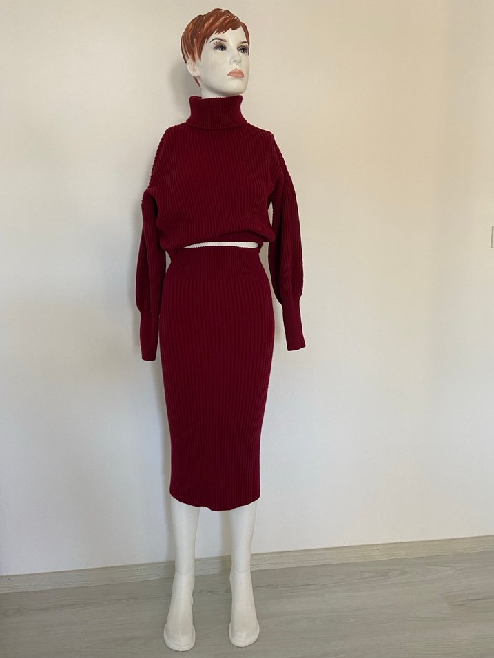 Bordo Yüksek Yakalı Uzun Triko Takım