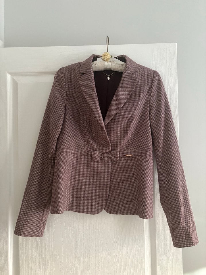 Bordo petit kare yün önde kapanma yerinde fiyonk detaylı Liu-Jo marka çok iyi durumda ceket. İtalyan 44 beden, normal 40 bedene denk gelmektedir. 38 beden birine de olur.