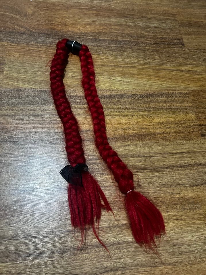 Bordo renkte, yün malzemeden yapılmış, püsküllü ve küçük siyah fiyonk detaylı örgülü saç aksesuarı. 63cm iki parça saç örgüsü şeklinde sentetik saç aksesuarı “Ürün alındıktan sonra iade kabul edilmemektedir. Lütfen satın almadan önce açıklamayı dikkatle okuyunuz.”
