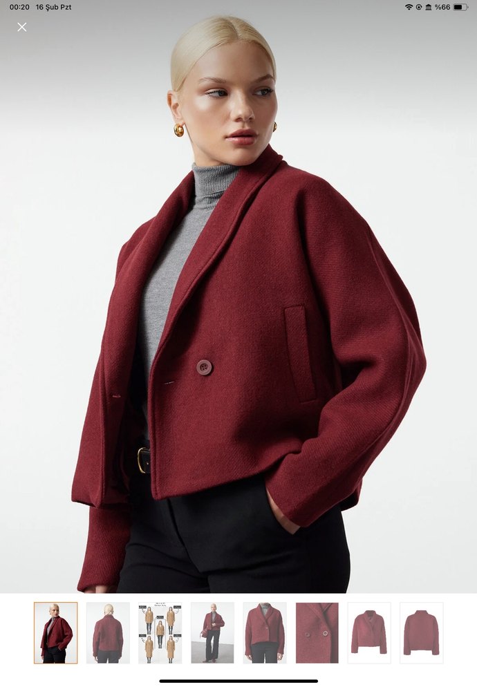 Bordo Yünlü Kısa Kaban - Görsel 2