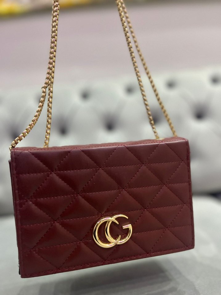 Bordo renkli deri kadın çanta, parlak kapitone deseni ve altın zincir detaylarıyla modern klasik tarzı ve zarafeti bir araya getirir. Günlük kullanıma uygun.