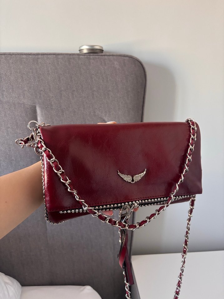 Bordo Zincir Detaylı Deri Kadın Çapraz Çanta
