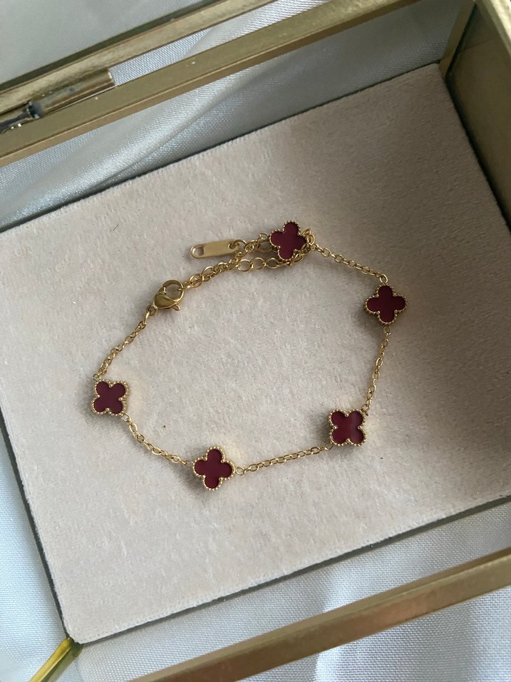 Bordo çiçek desenli detaylarla sade ve renkli zincir bileklik, günlük sokak stiline uyum sağlar.