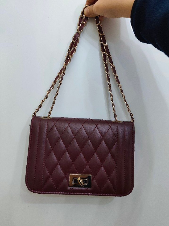 Bordo Zincir Detaylı Kadın Deri Çanta