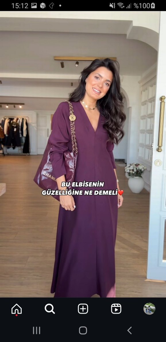 Uzun V Yakalı Elbise