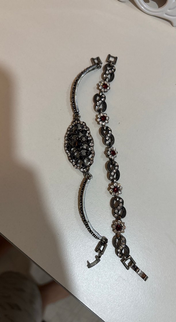 Hiç kullanılmadılar Günlük kullanıma uygun, bordo renkli, zincir detaylı ve desenli vintage kadın bilekliği.