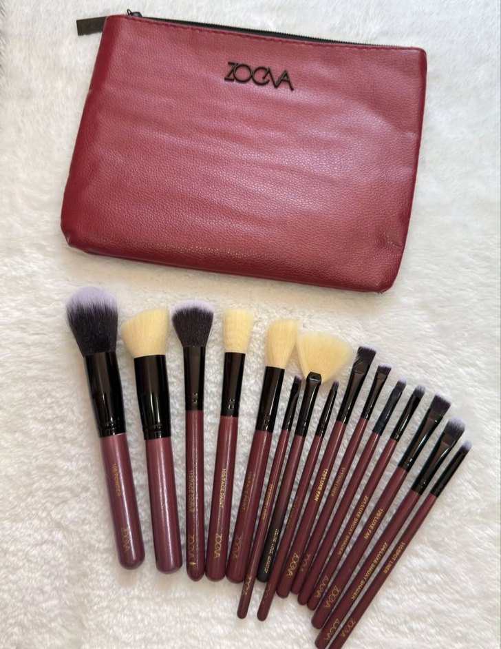 ZOCA marka bordo saplı çeşitli yumuşak kıllı makyaj fırçaları ve saklama için uyumlu bordo çanta içerir. ️