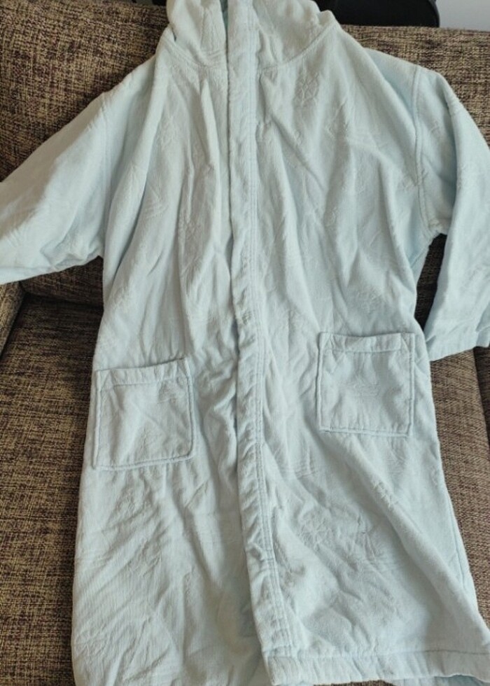 Çok iyi durumda 15 yaş erkek bornoz açık mavi renk Özdilek marka orijinal hiçbir kusuru yok sadece ütülenecek