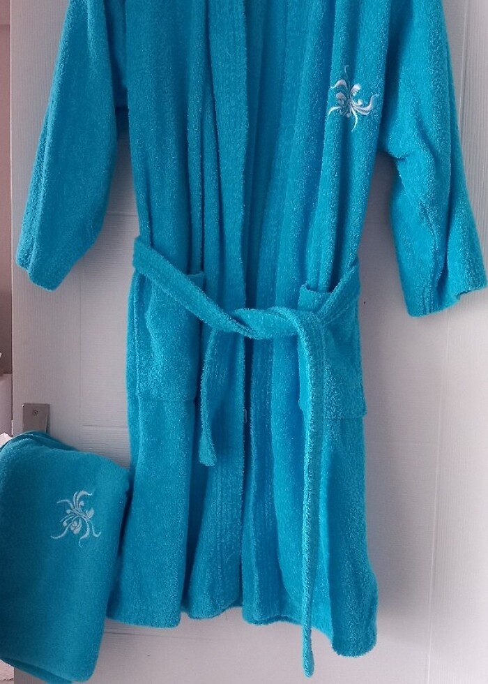 Yetişkin bornoz ve saç havlusu Hiç kullanılmadı