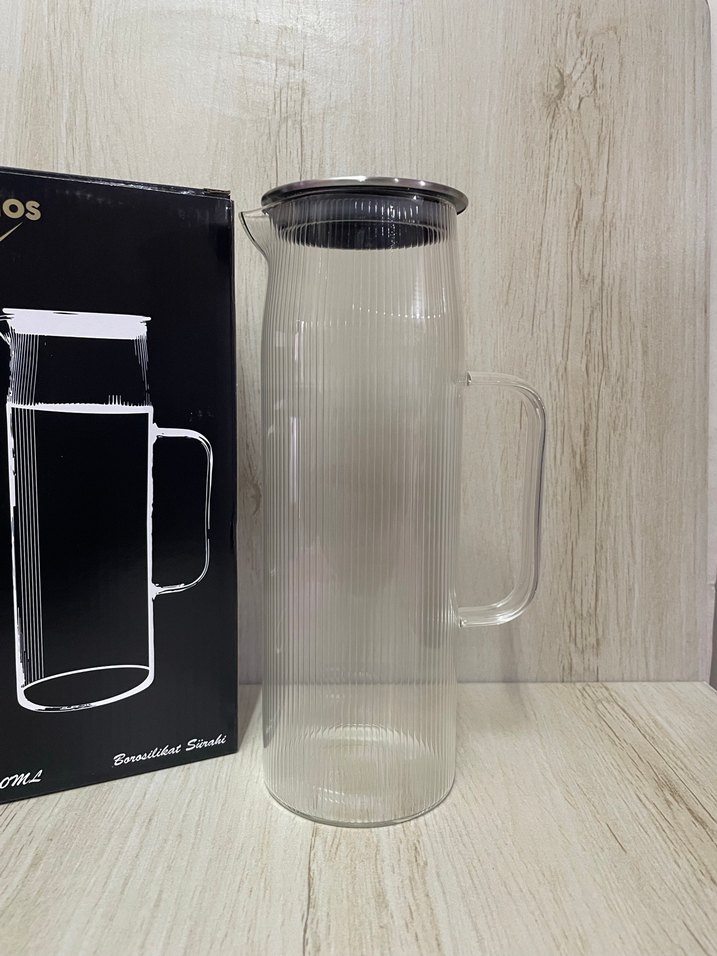 SIFIR ÜRÜN 1300ml METAL VAKUM KAPAKLI ŞIK ZARİF ÇİZGİLİ BOROSİLİKAT CAM SÜRAHİ SINIRLI SAYIDA MEVCUTTUR. #cam #sürahi #borosilikat #mutfak #camürün #metal