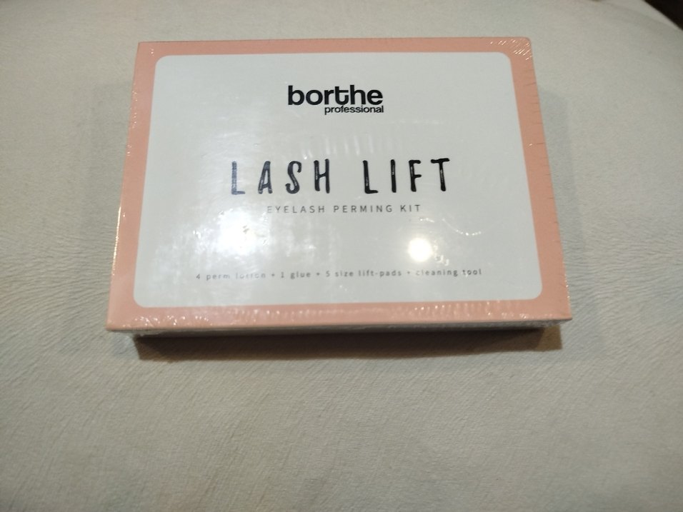 Borthe Lash Lift kirpik perm kiti, dört perm losyonu, yapıştırıcı, beş boy lift pedi ve temizleme aracından oluşur. Bej kutuda.