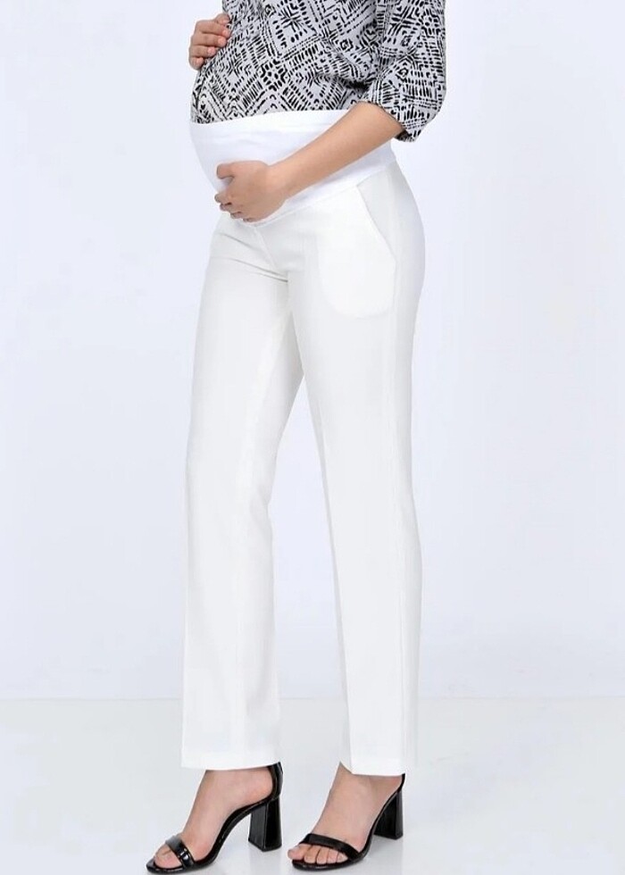 *Beden: 36-38-40-42-44-46-48-50-52-54 *Kumaş Tipi: Dokuma *Paça Tipi: Boru Paça *Stil: Klasik *Kalıp: Klasik *Materyal: Viskoz *Boy:Standart *Renk: Beyaz-Ekru *Koleksiyon: Hamile *Materyal Bileşeni: 50% Viskon,47% Polyester,3% Elastan