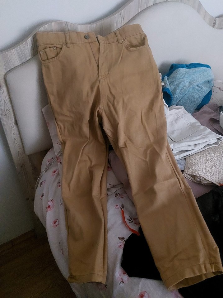 hardal renkte, bol kesim pantolon daha coknkislik kalın kot 40 beden ama 38 e daha rahat olur