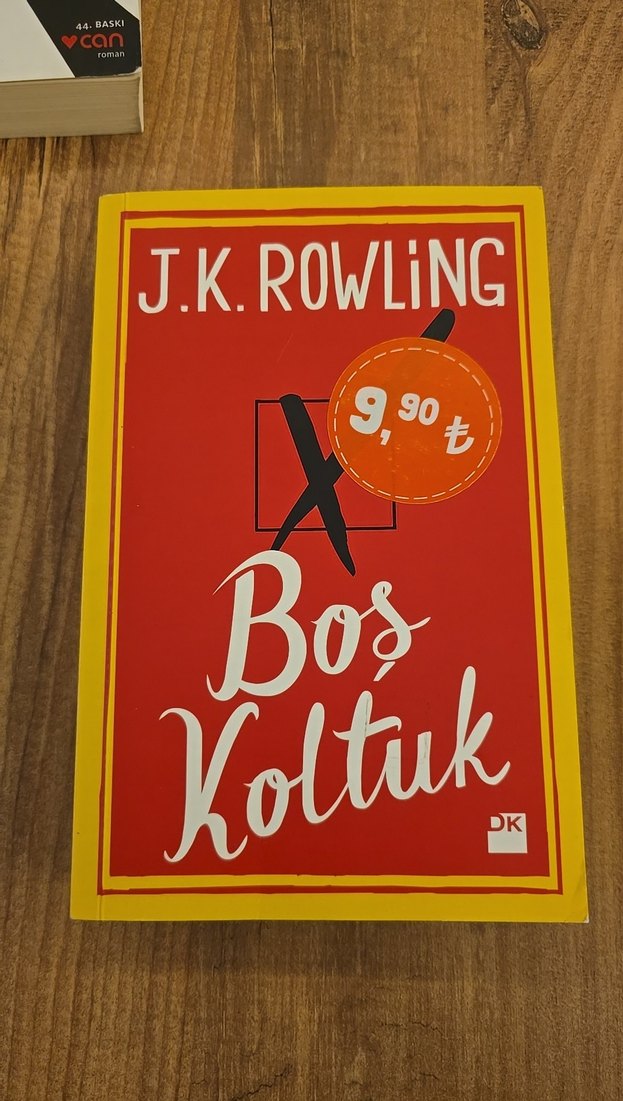 J.K. Rowling'in "Boş Koltuk" adlı romanı, kırmızı ve sarı kapaklıdır