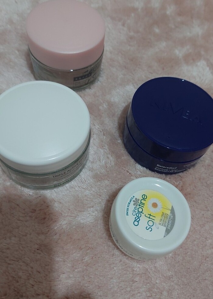 Ürünlerin içi boştur. Kalıp olarak ya da dekoratif olarak kullanılabilir. Tek alınırsa adet fiyatı 15tl'dir. Diadermine ve loreal olanlar 50ml olup camdır. Nivea olan 50ml olup plastiktir. Cire aseptine olan ise 30ml olup plastiktir. 4ünün toplam fiyatı 40tldir.