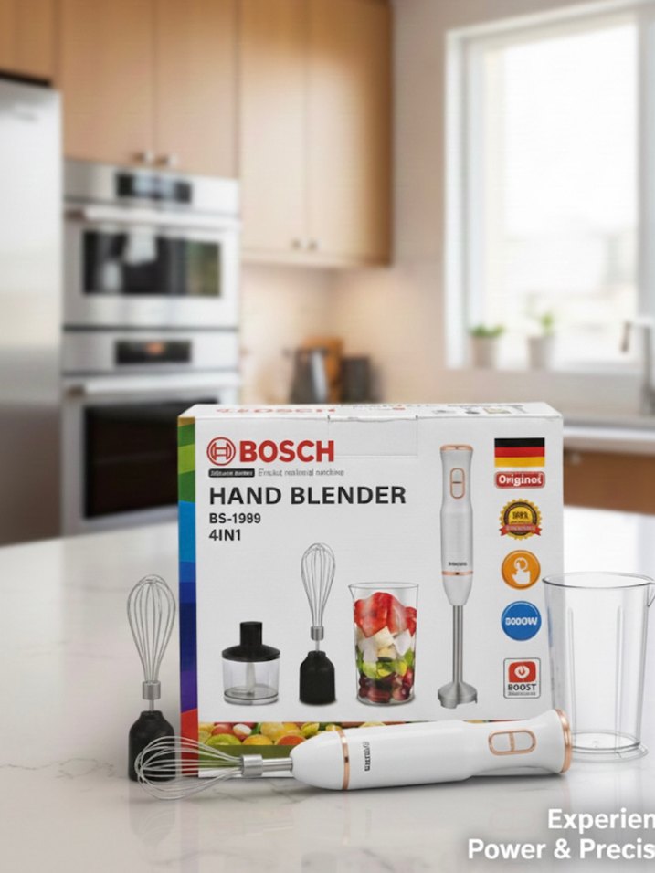 Bosch 4'ü 1 arada beyaz el blenderı, çırpıcı ve doğrayıcı gibi çoklu aparatlar ile mutfakta güç ve hassasiyet sağlar. ️
