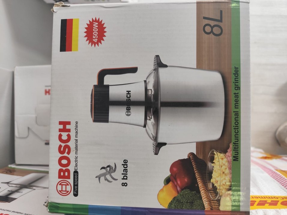 Bosch elektrikli doğrayıcı, 8 bıçaklı ve 4500W güçlü motor ile etkili doğrama sağlar. Paslanmaz çelik hazne ve sağlam tutma sapı bulunur.