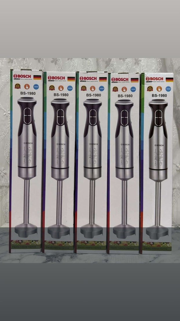 Bosch BS-1980 blender, beyaz ve gri renklerde, uzun karıştırma sapına sahip. Çeşitli mutfak işlerinde etkili karıştırma sağlar. yurtdışı garantisiz sıfır çalışıyor durumda kutulu
