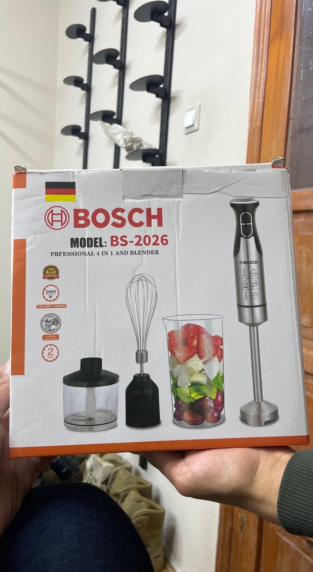 Bosch BS-2026 profesyonel 4'ü 1 arada blender; karıştırıcı, çırpıcı ve doğrayıcı aparatlarıyla birlikte gelir. Beyaz renkli, çok fonksiyonlu bir üründür.