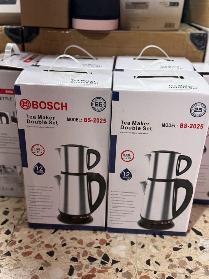 Bosch BS-2025 model çay makinesi, paslanmaz çelik ve siyah kulplu tasarıma sahiptir. ☕