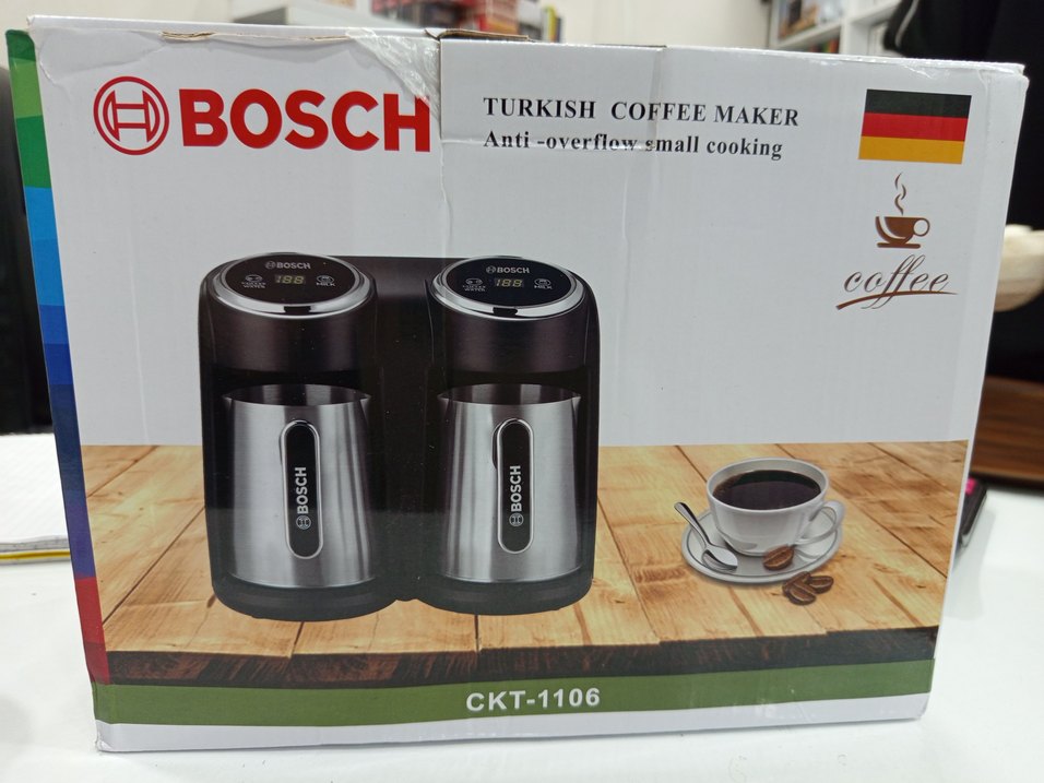 Bosch CKT-1106 Türk Kahvesi Makinesi siyah ve gri renkte, taşma önleyici ve küçük pişirme özelliklerine sahiptir. ☕ süt ve Türk kahvesi
