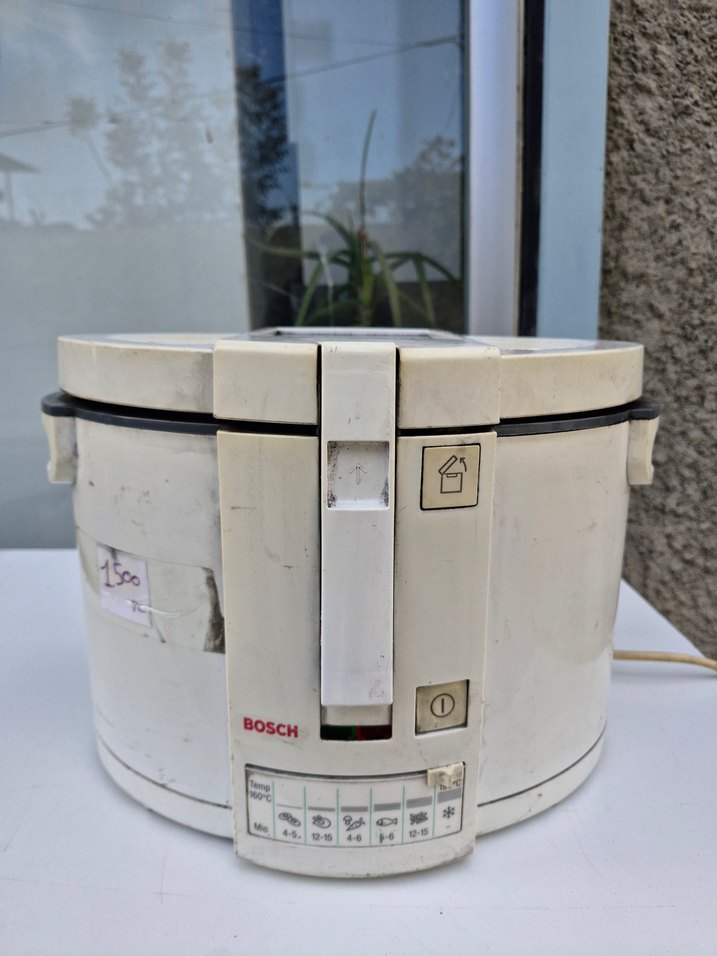 Bosch marka fritöz, sapasağlam sorunsuz çalışıyor. üzerine duman isi sindi o yüzden bazı yerlerinde leke var. detaylı temizlikle tertemiz olur. birkaç defa ancak kullanıldı hala içi de göründüğü gibi tertemiz
