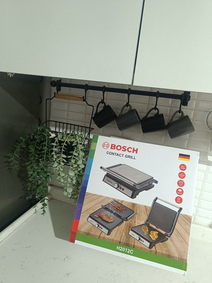Bosch H20120 siyah kontakt ızgara, ayarlanabilir sıcaklık ve kolay temizleme özelliklerine sahip, sandviç ve yiyecekleri eşit pişiren kompakt tasarımlı bir cihazdır.
