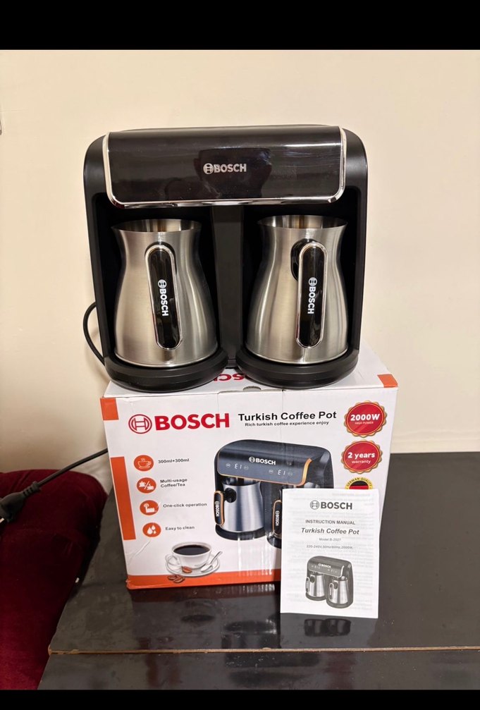 Dijital göstergeli sıfr ithal ürün . Bosch Türk kahvesi makinesi, iki paslanmaz çelik cezvesiyle hızlı ve kolay kahve yapma imkanı sunar. ☕ alım esnasında yorumda renk belirtmeniz rica olunur resimde farklı renkleri mevcut çünkü