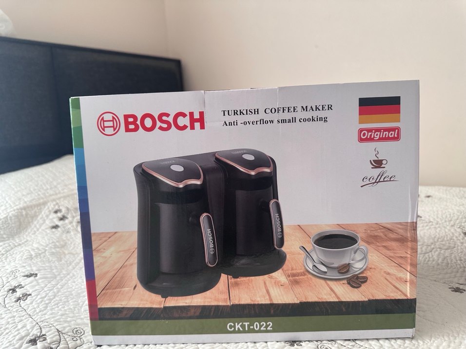 Bosch Türk kahve makinesi, taşmayı önleyen özellik ve küçük alanlar için kompakt tasarıma sahiptir. Koyu kahverengi renktedir. ☕
