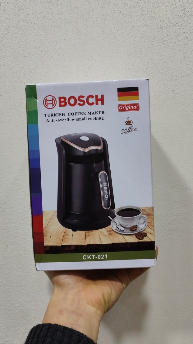 Bosch koyu kahverengi Türk kahve makinesi, taşmayı önleyici özellikli küçük boy pişirme için uygundur. Model CKT-021 kolay ve güvenli kahve yapımı sağlar. ☕