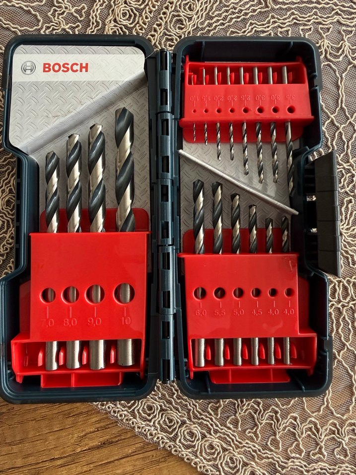 Bosch marka, farklı boyutlarda matkap uçlarından oluşan kırmızı kutulu set. Dayanıklı metal uçlar ve taşınabilir kompakt kutu içerir.