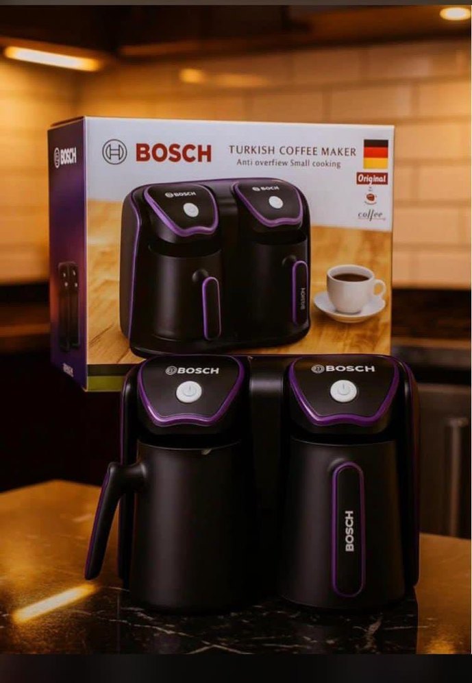 Bosch marka mor renkli Türk kahvesi makinesi, taşmayı önleyen tasarımı ve küçük boyutları ile çift cezveli olarak sunuluyor. ☕