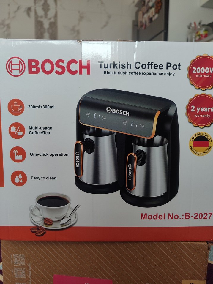 Bosch Türk Kahvesi Makinesi, 300ml kapasiteli iki paslanmaz çelik cezve, çoklu kullanım, tek tuşla çalışma ve kolay temizleme özelliklerine sahiptir.Dijitaldir.Sıfır üründür ve paketlidir☕