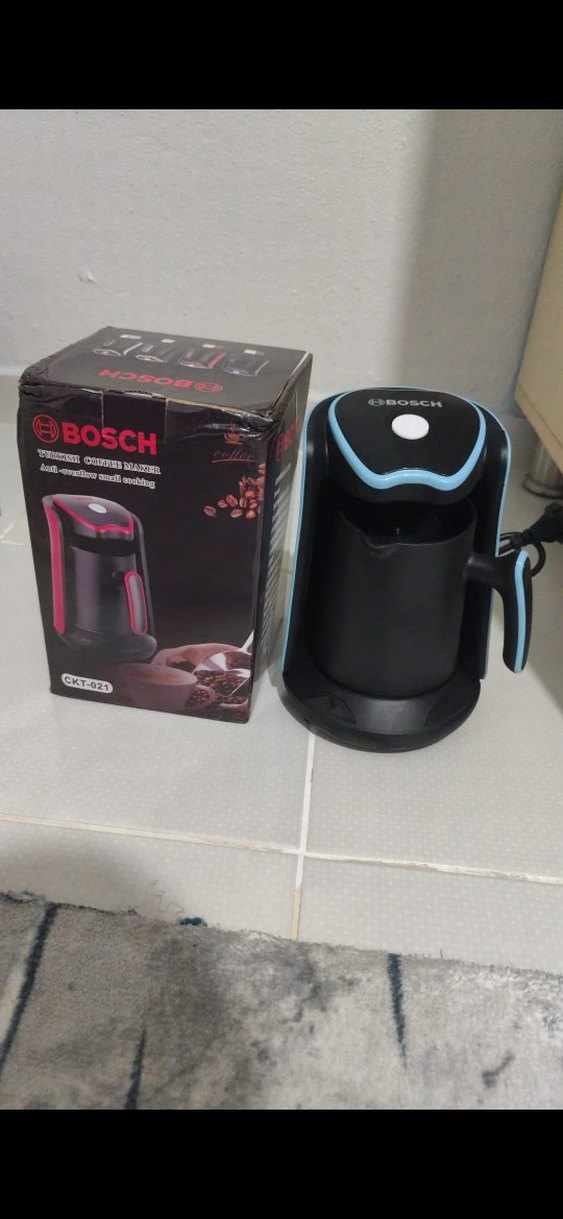 Bosch siyah kahve makinesi, koyu renkli canlı tasarıma sahip. Kompakt ve kolay kullanımlı kahve demleme cihazı. ☕