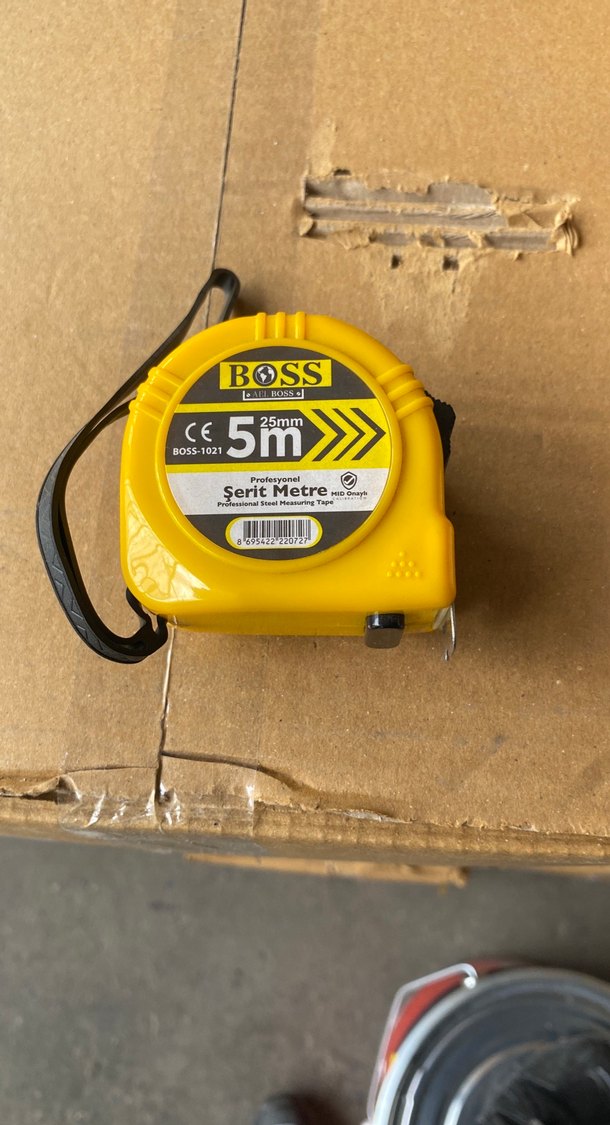 BOSS markalı sarı şerit metre, 5 metre uzunluğunda ve 25mm genişliğinde ölçüm bandına sahiptir. Dayanıklı kasası ve net işaretleri ile kullanışlıdır.