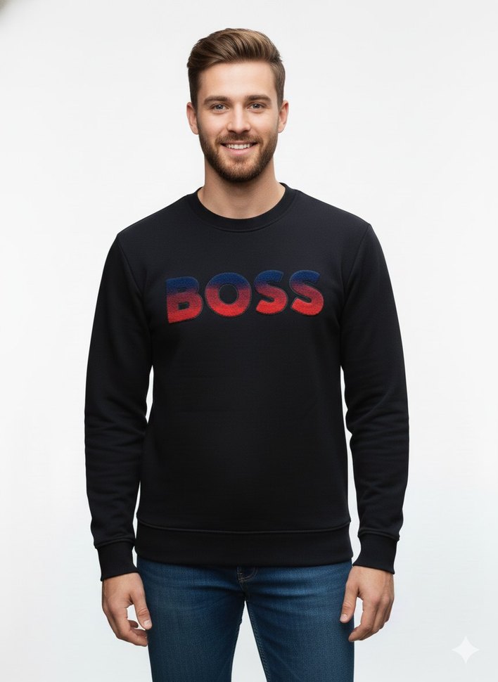BOSS Baskılı Orjinal Siyah Erkek Sweatshirt
