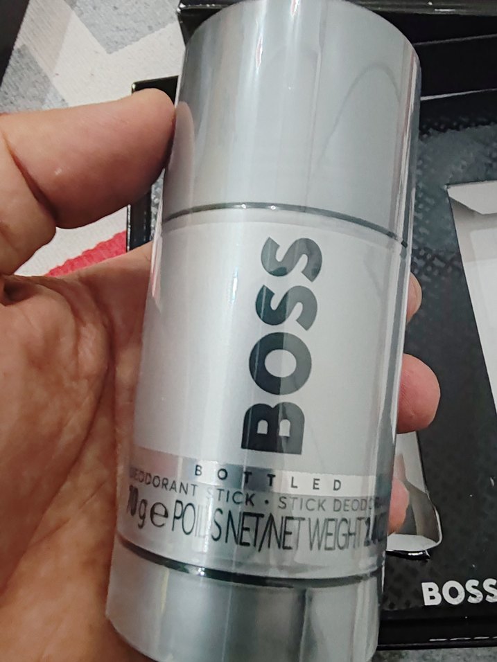 BOSS Bottled erkek deodorant stick, taze ve temiz koku sunar. Gri ve beyaz renklerde, iş ve karşı kültür tarzlarına uygundur.