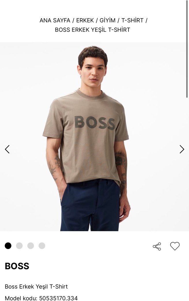 BOSS erkek tişört, yuvarlak yaka ve kısa kollu, rahat kesimlidir. Pamuklu kumaştan yapılmış, önünde 'BOSS' baskısı bulunur. Günlük kullanıma uygundur.